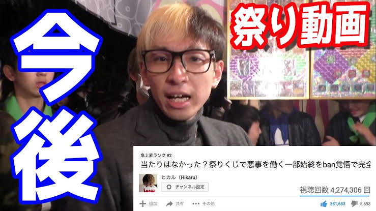 出典:【大事な報告】祭り(くじ引き)動画の今後についてお話しします - YouTube