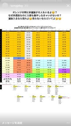 また、握手会の完売表を投稿し、「オレンジの所に非選抜が6人もいるよ?なぜ非選抜なのに5部も握手しなきゃいけないの?選抜入るなら売れよ売らないならどいてよ」と、ファンや運営に対しての文句も投稿していました。