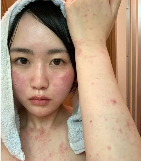 全身赤くて晴れてて痒いです。