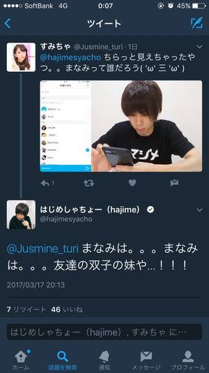 はじめしゃちょーは日本のYouTuberのパイオニア的存在であるヒカキンに、「SNOW」を使って寸劇を作ると言う動画で画像を送信しました、その際にスマホの画面が表示されており履歴に”まなみ”と言う名前がありました。