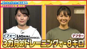 谷元星奈さんが関西テレビの番組「ロザンのクイズの神様」内のダイエット企画でライザップ式トレーニングに挑戦しました。