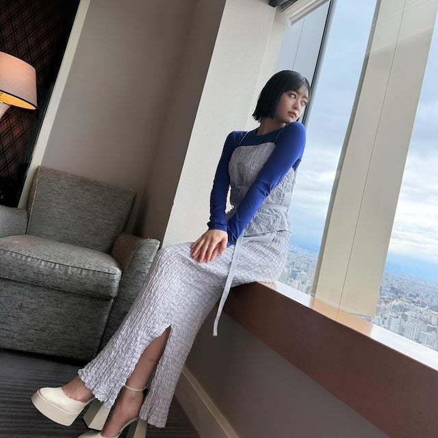 膝上丈のスカートやワンピースでも脚の長さとまっすぐなラインや、クールなミニボトム姿でも「綺麗な脚」「絵になる」と言われており、身長154cmという小柄さを感じさせません。